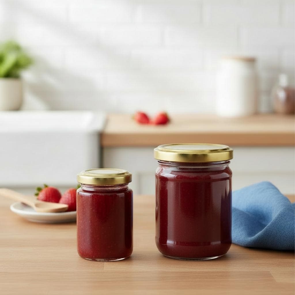 Il nostro bellissimo barattolo rotondo da 212 ml è adatto per marmellate, confetture, conserve e altre delizie.