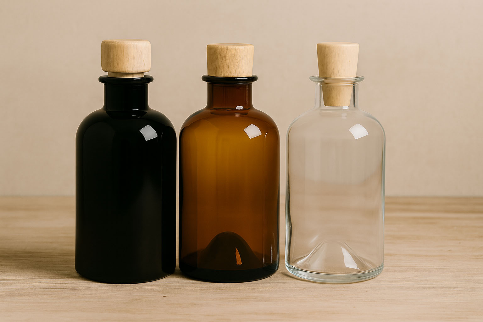 Le bottiglie da farmacia rappresentano una perfetta combinazione di tradizione e funzionalità. Il loro design caratteristico con spalle arrotondate e una forma solida conferisce loro un’estetica senza tempo, che si integra armoniosamente in diversi ambiti di utilizzo. Solitamente dotate di un'apertura a bocca larga, offrono una soluzione elegante e allo stesso tempo pratica per la conservazione di liquidi pregiati. Disponibili in capacità da 200 a 500 ml e nei colori del vetro nero, marrone e trasparente, permettono un adattamento personalizzato a diverse esigenze di prodotto. Che si tratti di liquori, distillati, tinture o elisir, queste bottiglie sottolineano l’elevata qualità del contenuto e garantiscono una presentazione accattivante.