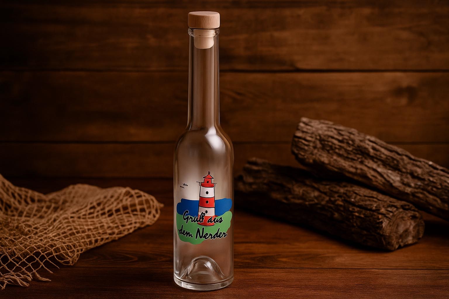 Bottiglie e vasi Bottiglia di vetro da 350 ml 'Opera', motivo: Nord, bocca: tappo di sughero