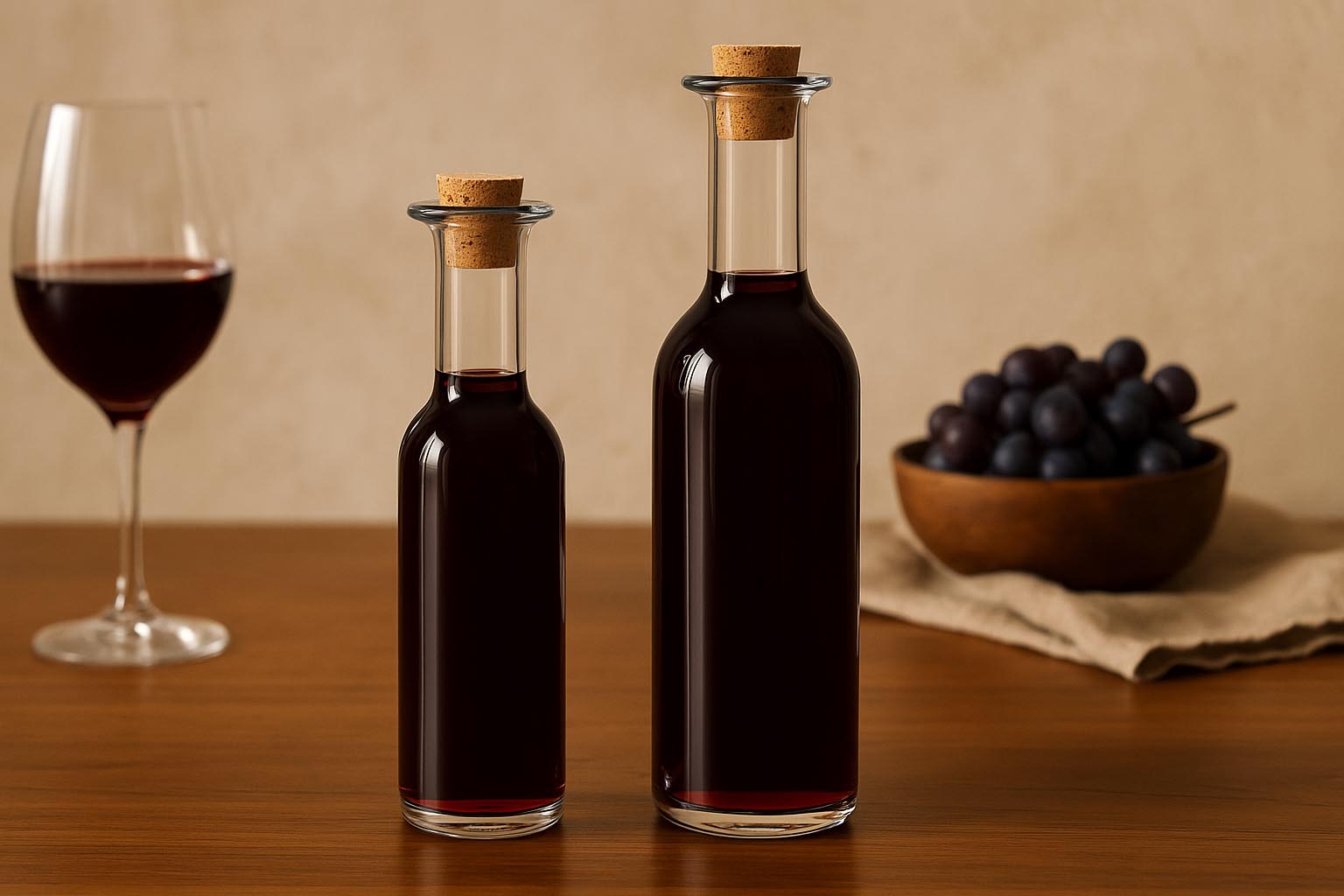 Le bottiglie di vetro della serie 'Optima Fine Wine' di Luigi Bormioli uniscono un design elegante alla massima funzionalità. Realizzate in vetro resistente, sono resistenti al calore, al freddo, adatte al microonde e al forno, oltre che lavabili in lavastoviglie. Il collo con tappo in sughero garantisce una chiusura sicura e a tenuta d'aroma, preservando la qualità del vino.