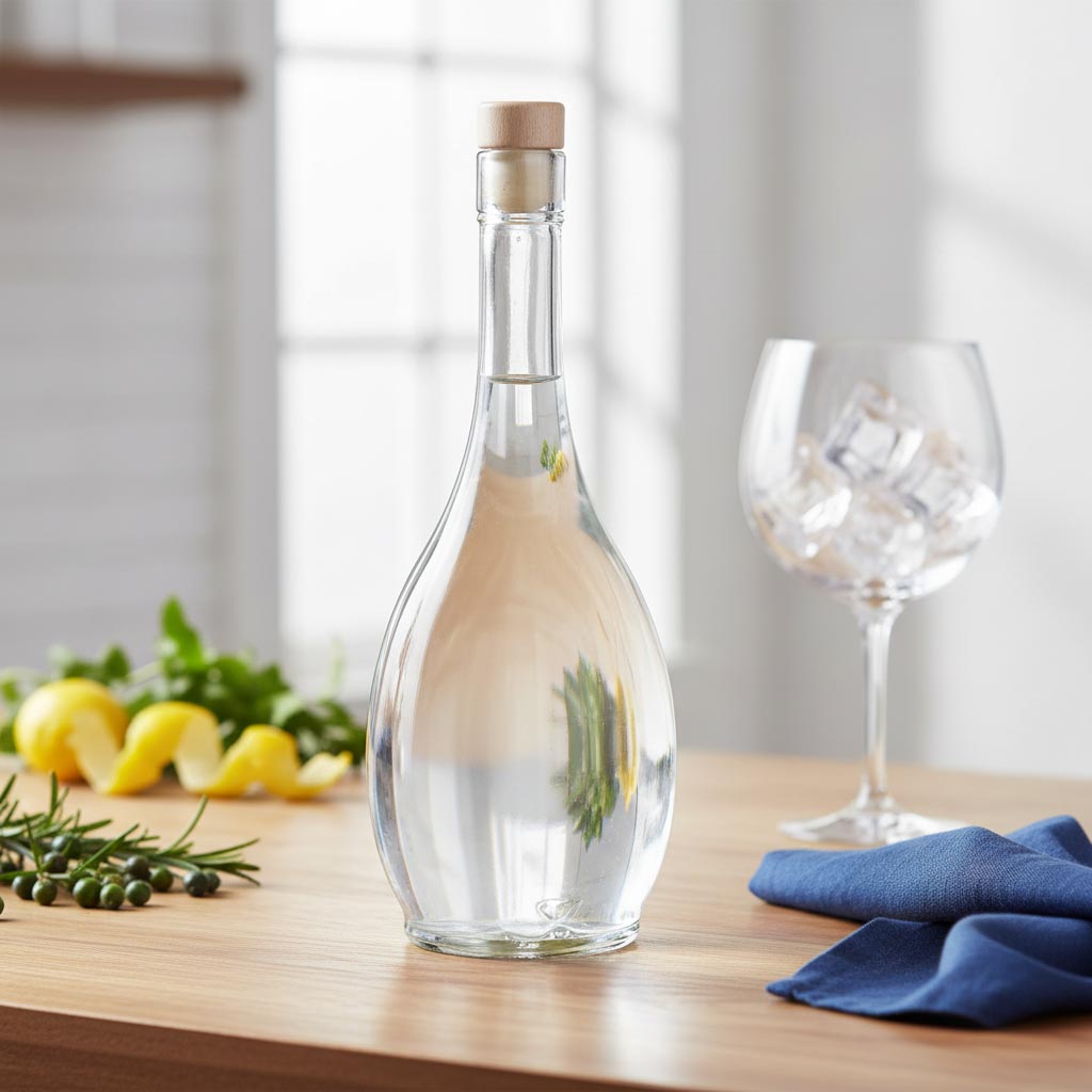 Elegante bottiglia di vetro da 500 ml, "Saragossa" si distingue per il design classico rivisitato in chiave contemporanea, vanta una base ovale, corpo panciuto e collo lungo: l'ideale bottiglia da grappa, alcolici ma anche olio e aceto.